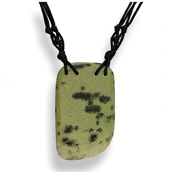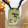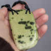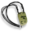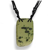 Niezwykły naszyjnik z zielonkawym jaspisem, zawieszonym na czarnym sznurku i wykończony srebrem p.925.
