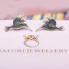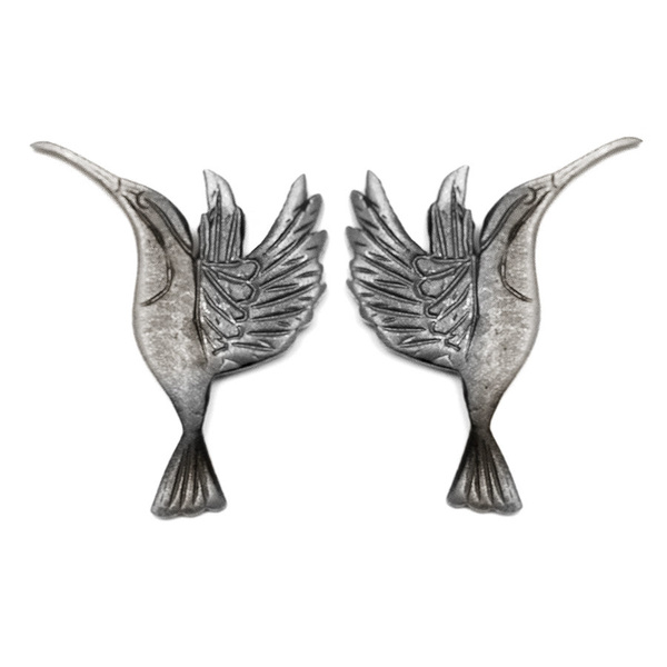 Przepiękne, delikatne sztyfty w kształcie kolibrów, w całości wykonane ze srebra próby 925. Wzór został dodatkowo ręcznie pokryty oksydą, dzięki czemu całość uzyskała oryginalny charakter i idealnie wpasowuje się w modny ostatnio styl Vintage.