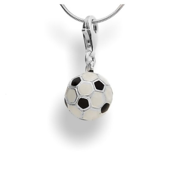 Urocza zawieszka do bransoletki charms w kształcie piłki. Całość wykonana ze srebra próby 925 i miejscowo pokryta białą i czarną emalią. Rewelacyjny prezent dla miłośniczek futbolu i piłkarzy. Dodatkowo istnieje możliwość bezpłatnej wymiany karabińczyka do bransoletki na wisiorek do łańcuszka lub zawieszkę do bransoletki.