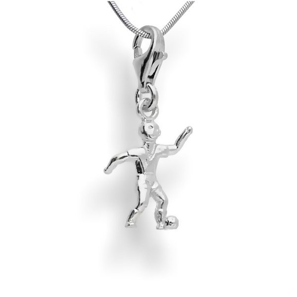 Rewelacyjna zawieszka srebrna do bransoletki typu charms z piłkarzem. Wzór w całości wykonany ze srebra próby 925. Świetny dodatek do bransoletki dla każdej fanki futbolu.