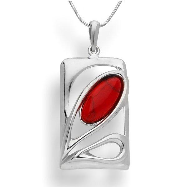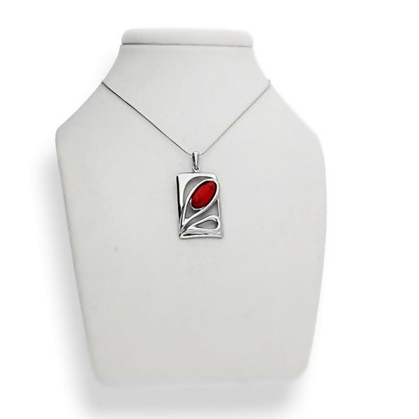 • Srebrna zawieszka z kamieniem koralowym - pr. 925