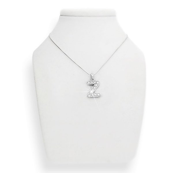 Okazała zawieszka w kształcie literki, wysadzana wysokiej jakości cyrkoniami, które cudnie odbijają światło.