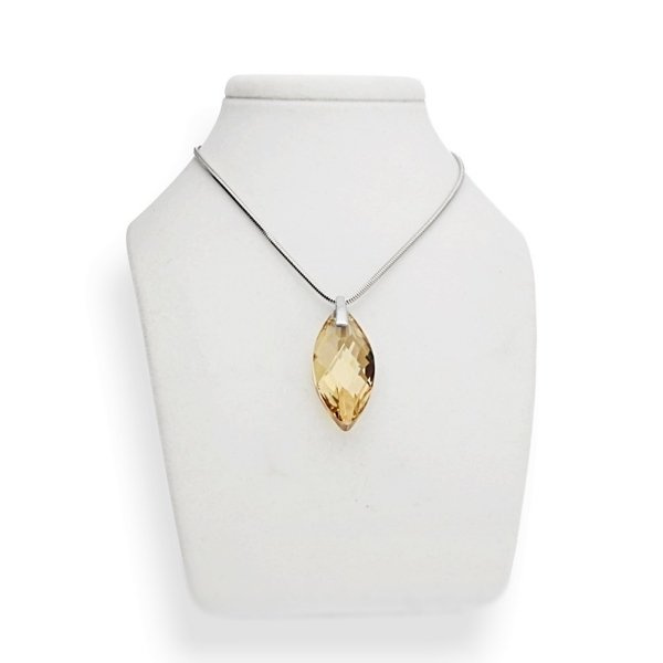 Niezwykły wisior z oryginalnym kryształem pochodzącym z kolekcji Crystals from Swarovski. Do projektu wykorzystano kryształ o pięknym i delikatnym złotym odcieniu, całość wykończono elegancką zawieszką wykonaną ze srebra próby 925.