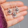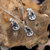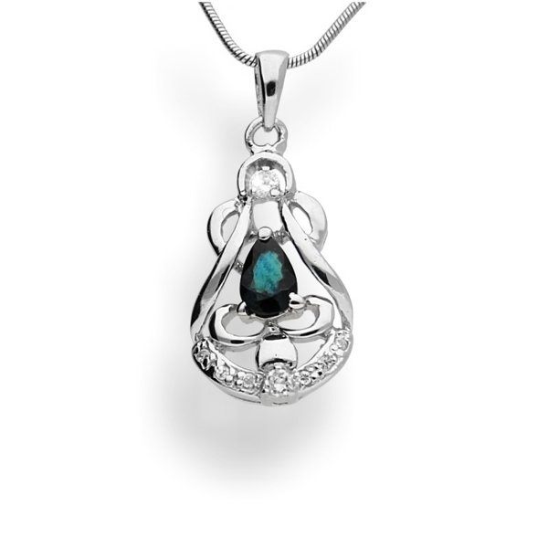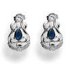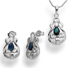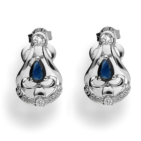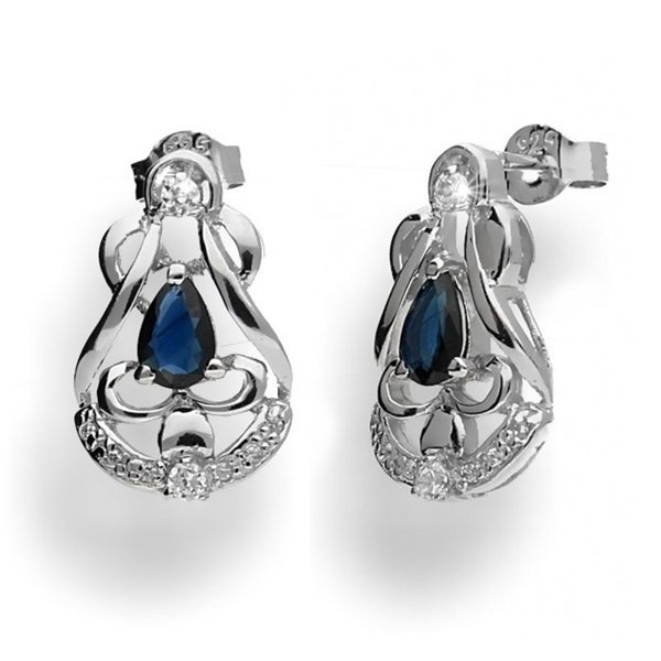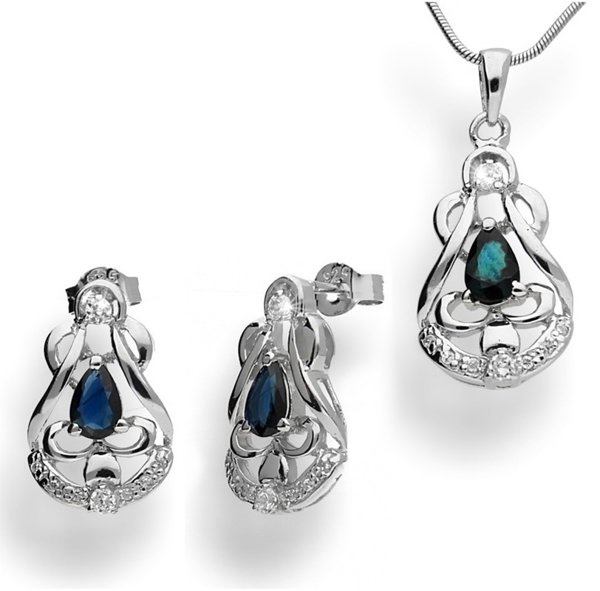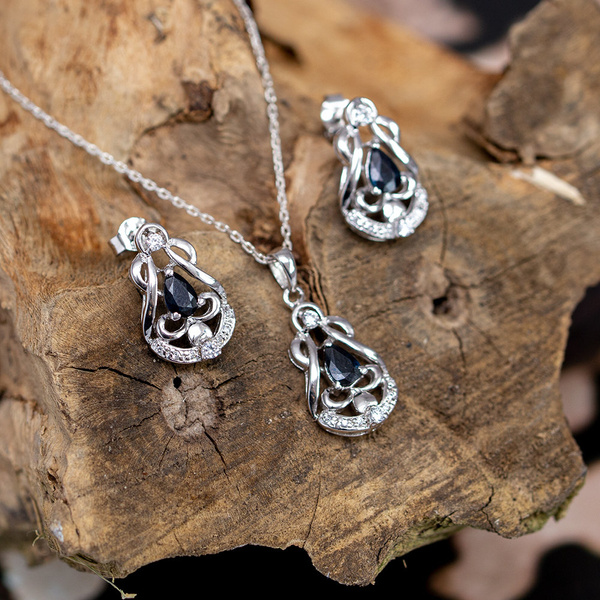 Piękny, niezwykle twarzowy komplet składający się z kolczyków i wisiorka wykonanych ze srebra próby 925, szafirów oraz cyrkonii.
