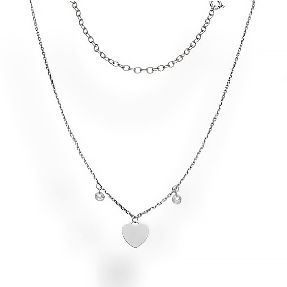 Piękny naszyjnik typu choker-celebrytka z zawieszką w kształcie serca i dwiema cyrkoniami. Całość wykonana ze srebra próby 925.