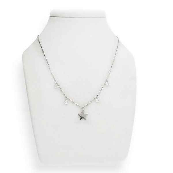 Przepiękny, klasyczny naszyjnik srebrny typu celebrytka z gwiazdą oraz cyrkoniami. Całość wykonana ze srebra próby 925.