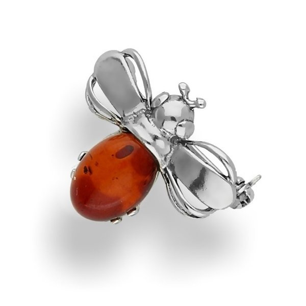Prześliczna broszka srebrna w kształcie pszczoły, ozdobiona cudownym, polskim bursztynem.