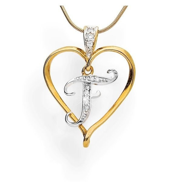 • Srebrna zawieszka z cyrkoniami - Literka w sercu - F - pr. 925