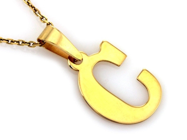 Prześliczna zawieszka wykonana ze złota próby 585, w kształcie literki C.