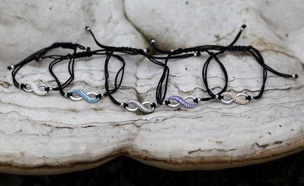 Bransoletka na sznurku, regulowana z oryginalnym elementem firmy Swarovski w kształcie znaku nieskończoności.