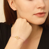 Piękna bransoletka typu "celebrytka" wykonana ze srebra próby 925, pokryta 24 K złotem oraz zdobiona cyrkoniami najwyższej jakości. Pasuje do kobiet w każdym wieku, idealna na prezent dla ukochanej lub przyjaciółki. Drobny łańcuszek prześlicznie prezentuje się na ręce.