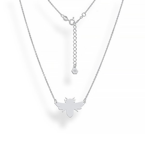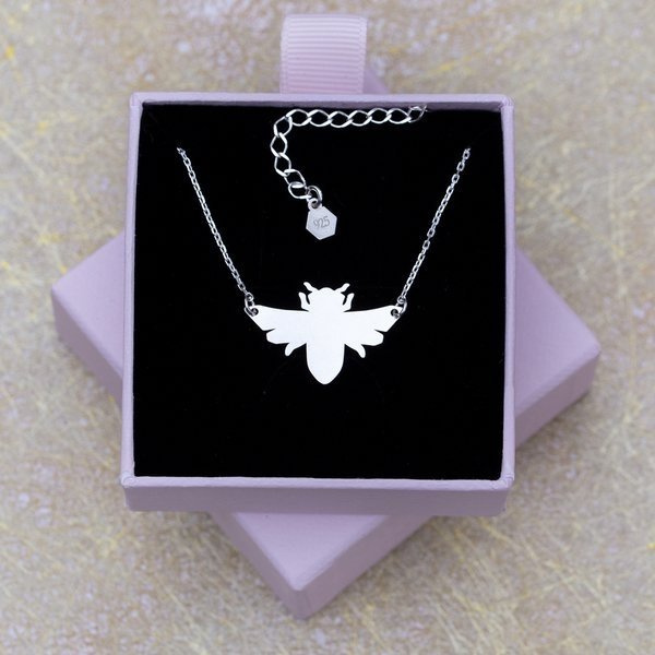 Srebrny naszyjnik z blaszką w kształcie dużej pszczoły. Idealny dla miłośników przyrody, natury, ekologi, zwierząt czy owadów.