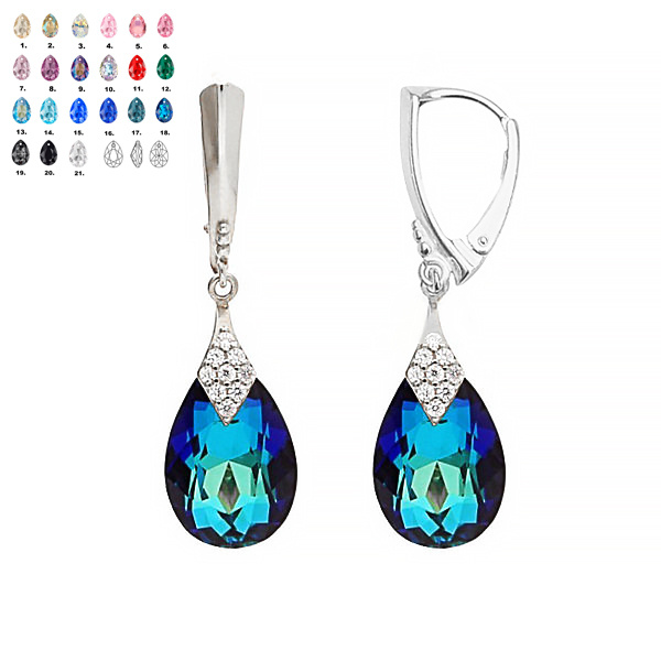 Prześliczne kolczyki srebrne próby 925 z oryginalnymi kryształkami z kolekcji Crystals from Swarovski w pięknym, niebieskim kolorze.