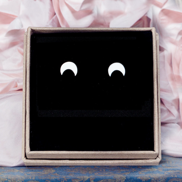 Piękne, eleganckie i uniwersalne kolczyki srebrne, próby 925, w kształcie księżyców. Sztyfty zostały pokryte warstwą rodu, który zabezpiecza srebro przed ciemnieniem.