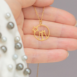 Prześliczny, delikatny naszyjnik wykonany ze srebra próby 925 pokryty warstwą 24K złota. Zawieszka przedstawia dwa przytulone kotki nad którymi jest gwiazdka.