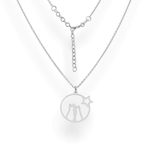 Prześliczny, delikatny naszyjnik wykonany ze srebra próby 925. Zawieszka przedstawia dwa przytulone kotki nad którymi jest gwiazdka.