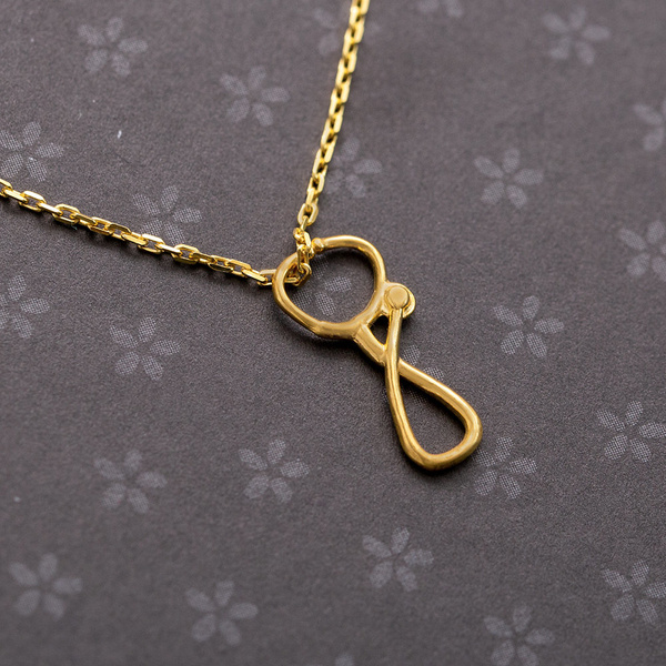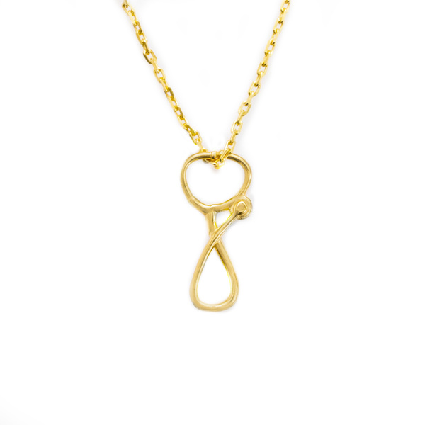 Przepiękny naszyjnik z zawieszką przedstawiającą stetoskop.