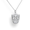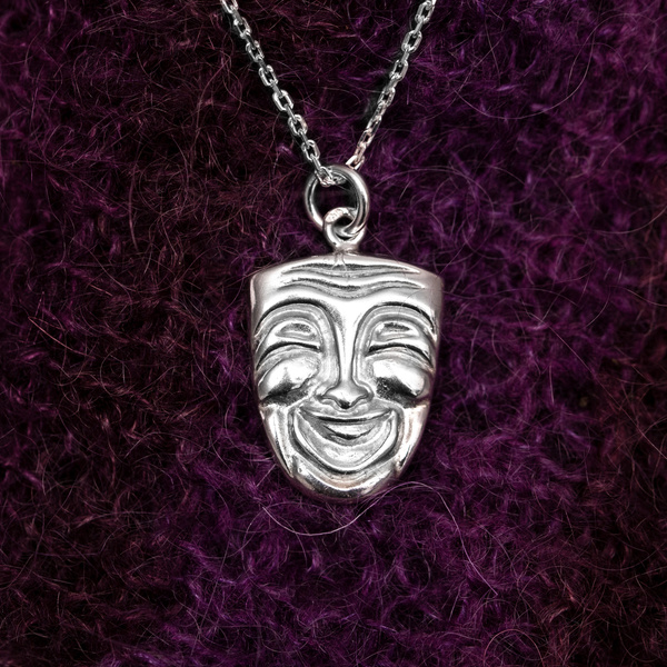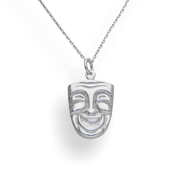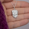 Przepiękny naszyjnik z precyzyjne wykonaną zawieszką w kształcie maski weneckiej. Wzór w całości został wykonany ze srebra próby 925.