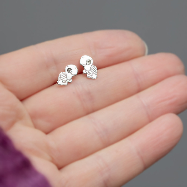 Piękne, eleganckie i uniwersalne kolczyki srebrne, próby 925 w kształcie sympatycznych żółwików.