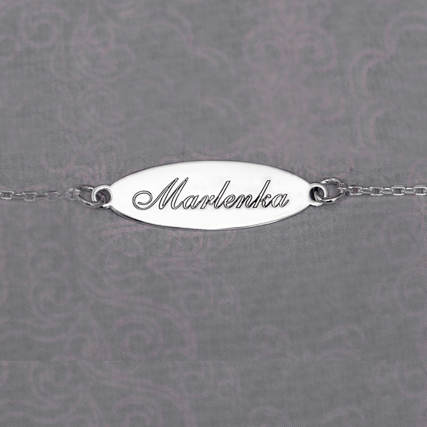 Prześliczna, delikatna bransoletka wykonany ze srebra próby 925. Na życzenie możemy wygrawerować dowolne imię.