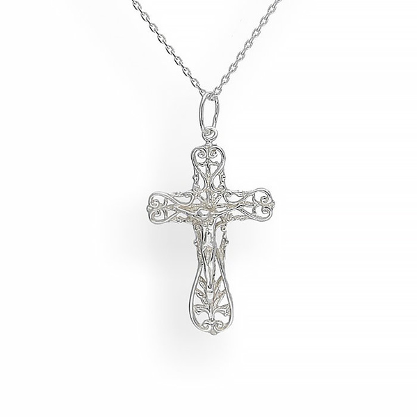 Ażurowy krzyżyk wykonany ze srebra próby 925,