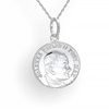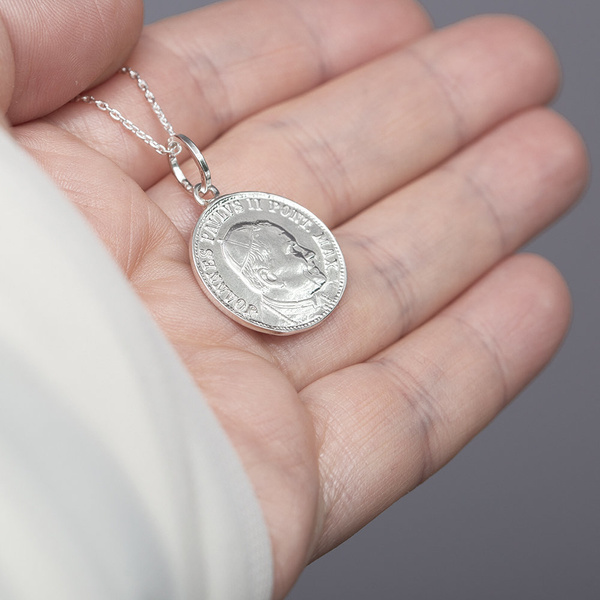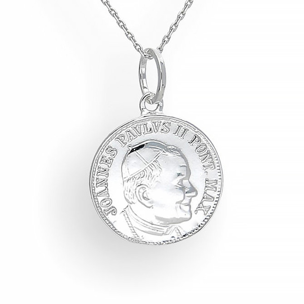 Śliczny, oryginalny, dwustronny medalik, wykonany ze srebra próby 925.