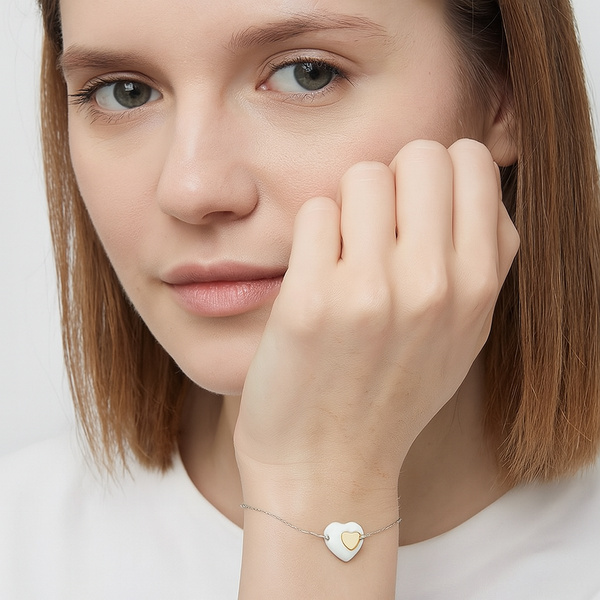 Piękna bransoletka typu "celebrytka" wykonana ze srebra próby 925, pokryta rodem. Serce srebrnym sercu jest pokryte złotem 24K