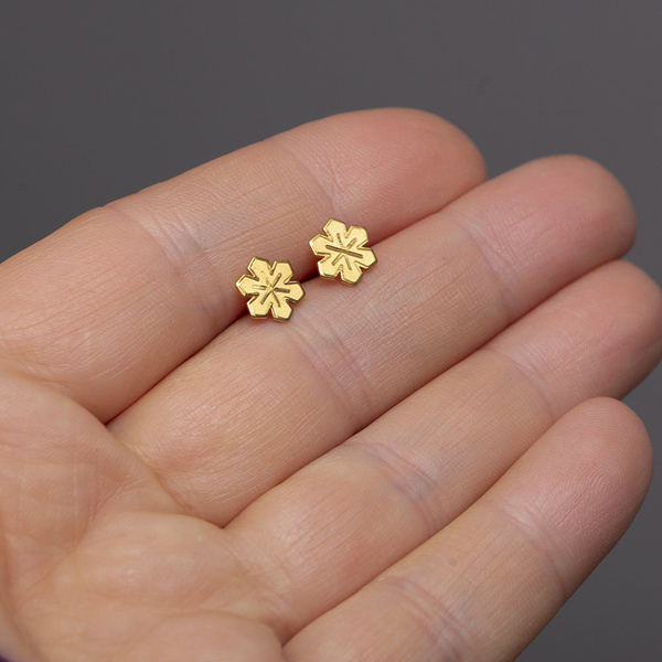 Piękne, klasyczne kolczyki srebrne, próby 925 w kształcie śnieżynki. Zostały pozłocone złotem 24K.