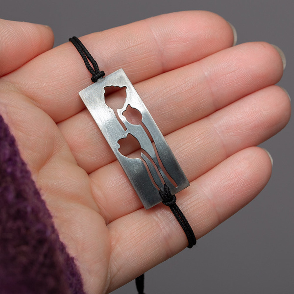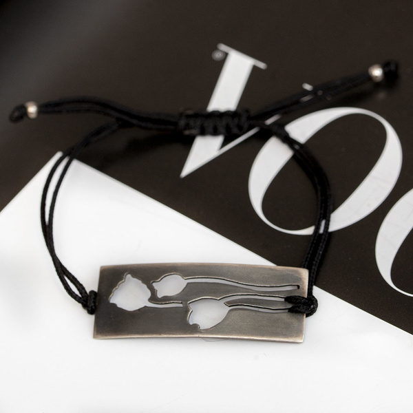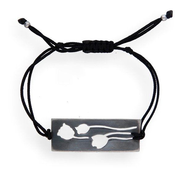 Przepiękna i bardzo wygodna w noszeniu bransoletka na sznurku w kolorze czarnym z ręcznie wykonanym, ażurowym elementem srebrnym p. 925.