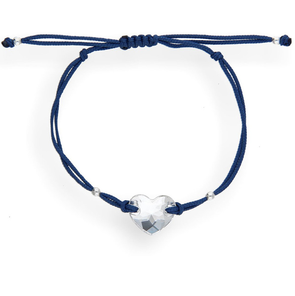 Przepiękna i bardzo wygodna w noszeniu bransoletka na sznurku w kolorze niebieskim z oryginalnym sercem firmy Swarovski.