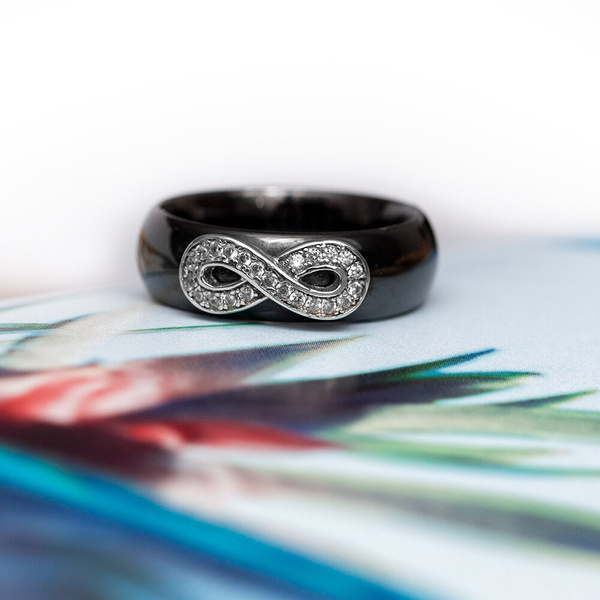 Klasyczna obrączka wykonana z czarnej ceramiki i srebra p. 925.