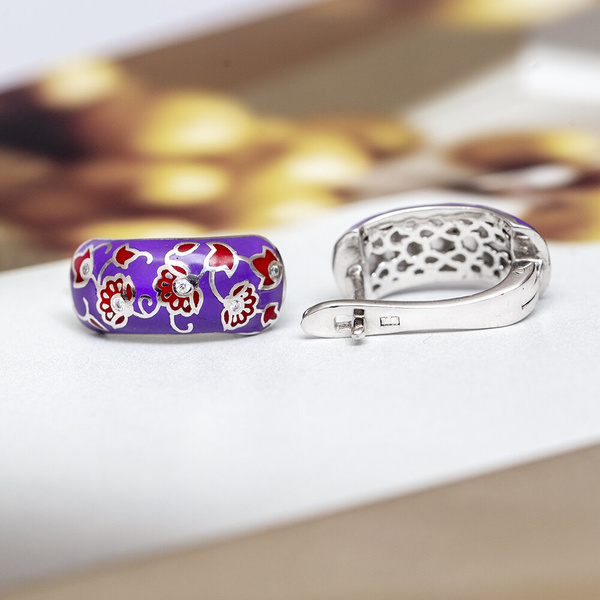 Niezwykle efektowne kolczyki z motywami kwiatowymi malowane ręcznie emalią i przyozdobione cyrkoniami.