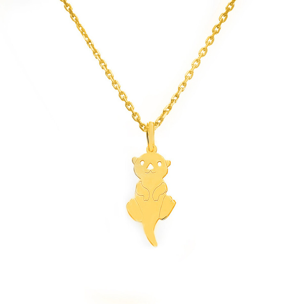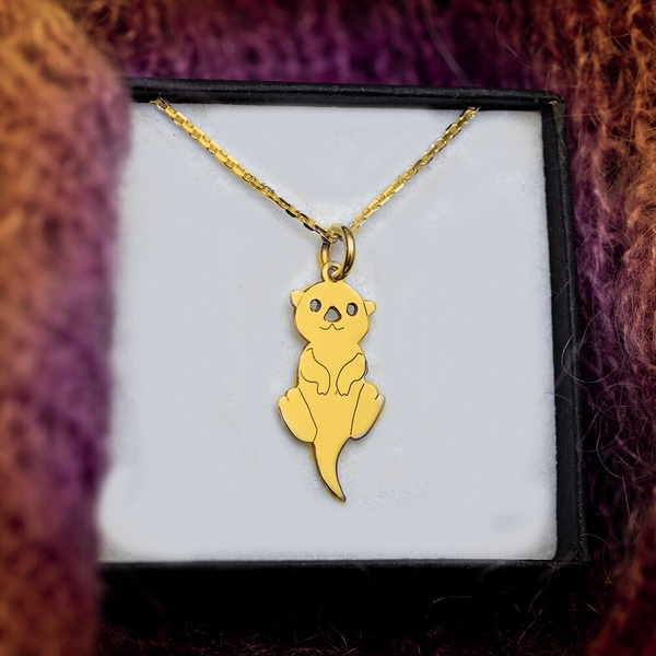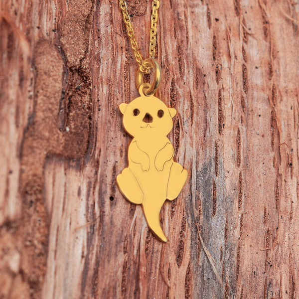 Przepiękny naszyjnik z precyzyjne wykonaną zawieszką w kształcie sympatycznej wydry. Wzór został wykonany ze srebra próby 925 i pozłocony złotem 24K