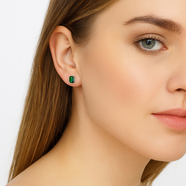 Prześliczne minimalistyczne kolczyki srebrne próby 925 z oryginalnymi kryształkami z kolekcji Crystals from Swarovski w pięknym, szmaragdowym kolorze.