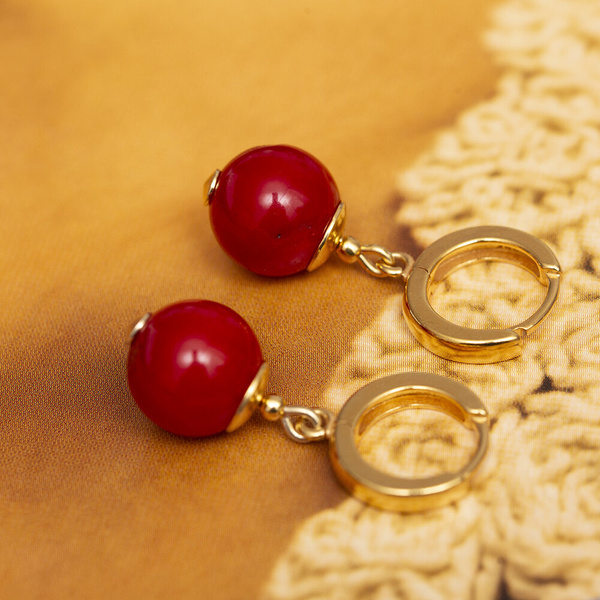 Niezwykle efektowne kolczyki z naturalnego, czerwonego korala i srebra pozłoconego złotem 24K.