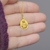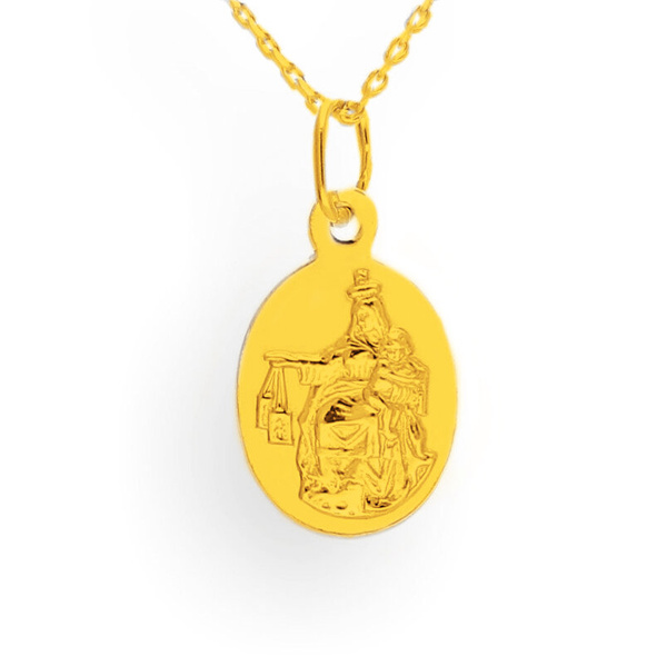 Medalik na łańcuszku wykonany ze srebra próby 925 ,dwustronny, z wizerunkiem Matki Szkaplerznej z jednaj strony i Najświętszym Sercem Pana Jezusa z drugiej. Wykonany jest ze srebra p. 925 i pokryty złotem 24K.