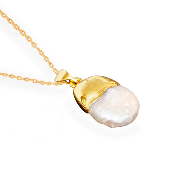 Kochani, wykonałam dla Was przepiękny i pełen uroku naszyjnik z naturalną, płaską perłą zawieszoną na srebrnym łańcuszku, pozłoconym złotem 24K.