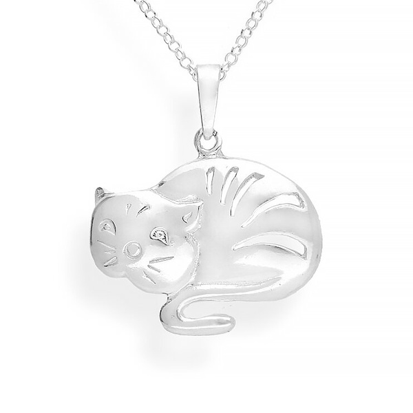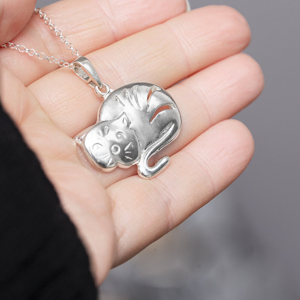 Niezwykle oryginalny naszyjnik z ażurowym kotkiem wykonany ze srebra próby 925.