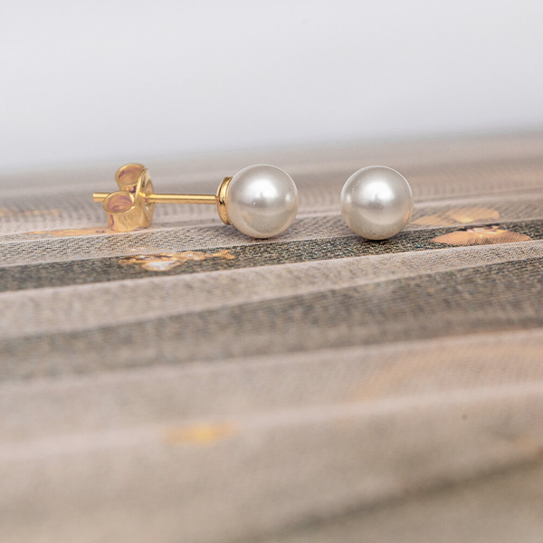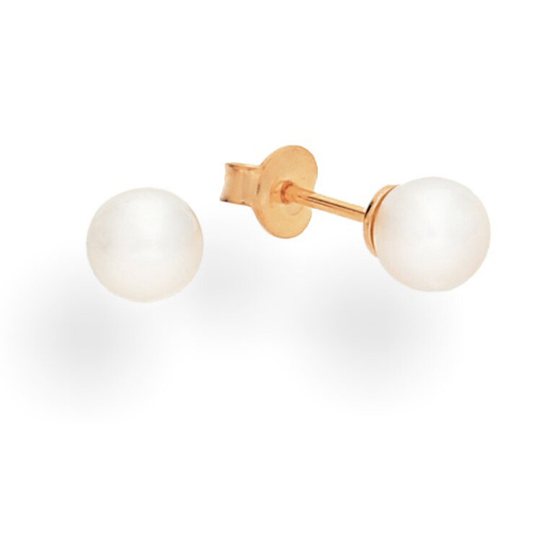 Piękne, klasyczne kolczyki wykonane ze złota 14K p. 585 z oryginalnymi, 6mm, białymi perełkami Swarovskiego.