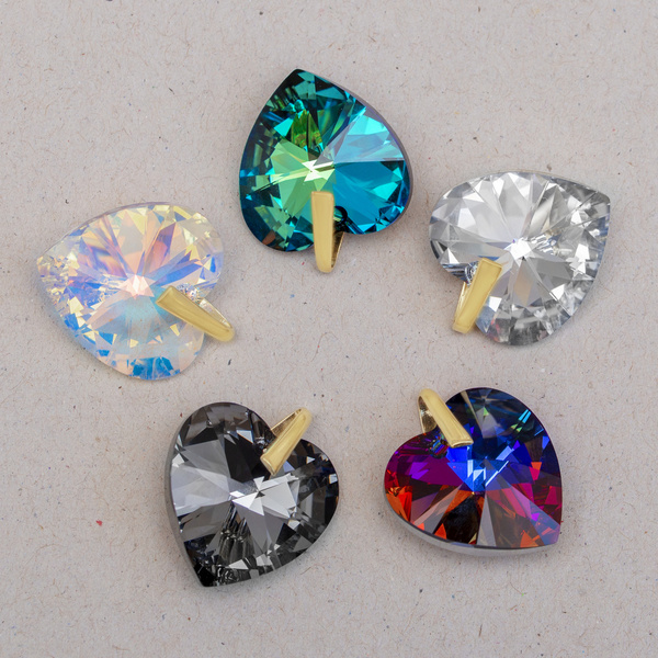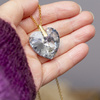 Przepiękny, duży wisior w kształcie serca. Kryształek pochodzi z kolekcji Crystals from Swarovski. Mieni się w kolorze srebrnym i posiada niezwykłą głębię. Całość wykończona klasyczną zawieszką ze srebra próby 925 pozłoconą złotem 24K.