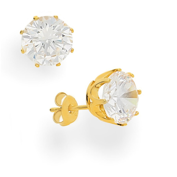 Sztyft z wysokiej klasy bezbarwną cyrkonią, wykonany ze srebra p. 925, pozłoconego złotem 24K.