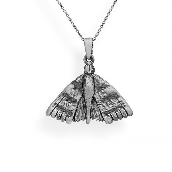 Naszyjnik ze sympatyczną ćmą. Został zaoksydowany, dzięki czemu cały wzór uzyskał unikatowy charakter stylu Vintage.