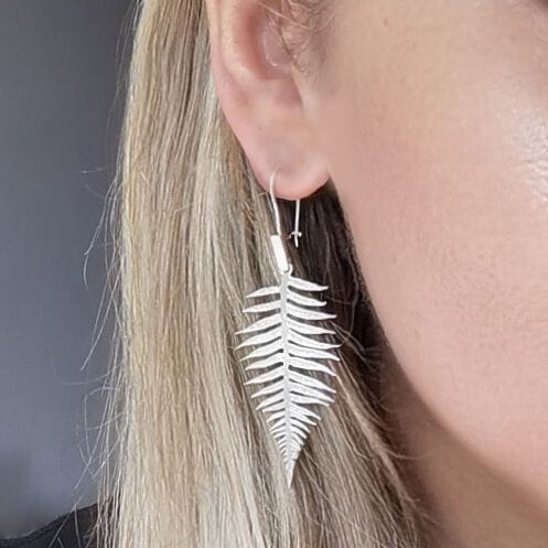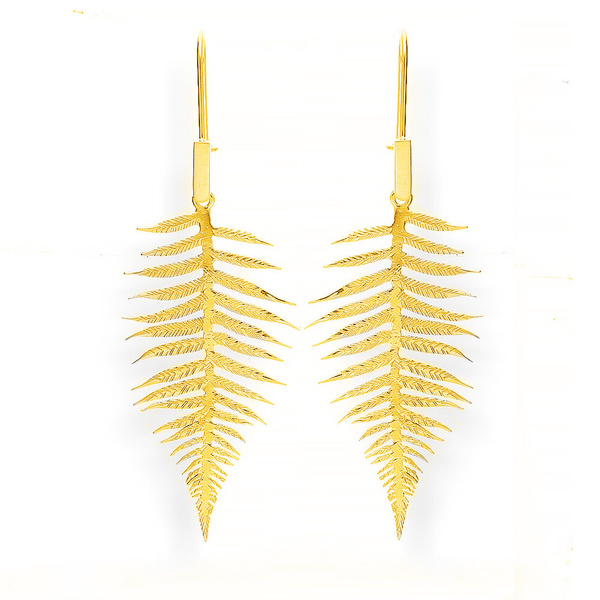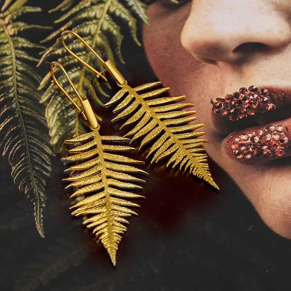 Te piękne i okazałe kolczyki z listkami paproci, zostały wykonane ze srebra p. 925, które pozłociłam złotem 24K.