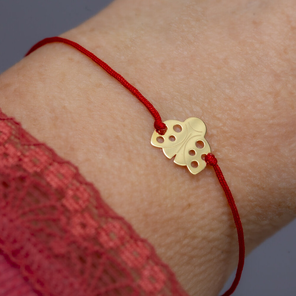 Modna i efektowna bransoletka sznurkowa z biedroneczką.