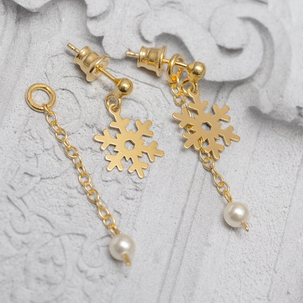 Ten model kolczyków można nosić na dwa sposoby - jako samą śnieżynkę lub z dołączonym łańcuszkiem zwieńczonym perełką. Element z perełką nakłada się wtedy na sztyft od tylnej strony płatka ucha.