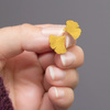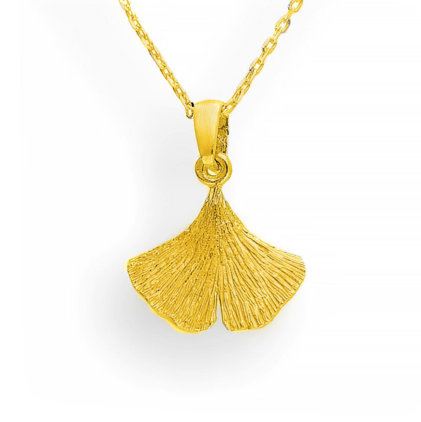 Satynowe kolczyki z listkami miłorzębu, zostały wykonane ze srebra p. 925 pokrytego złotem 24K.