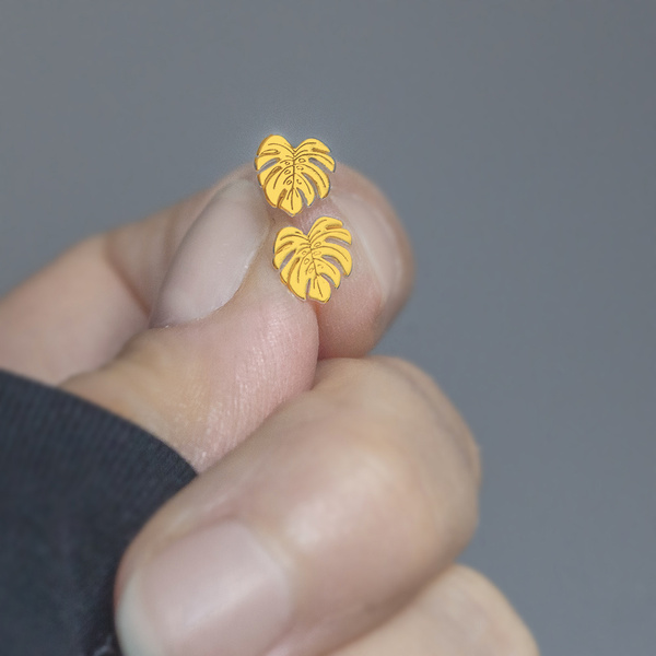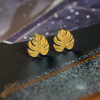 • SZTZ-750 Kolczyki LIŚĆ MONSTERY, MONSTERA - Srebro pr. 925 POZŁACANE