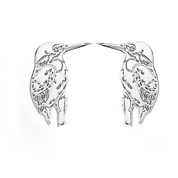 Piękne, klasyczne kolczyki srebrne, próby 925 w kształcie zimorodków.