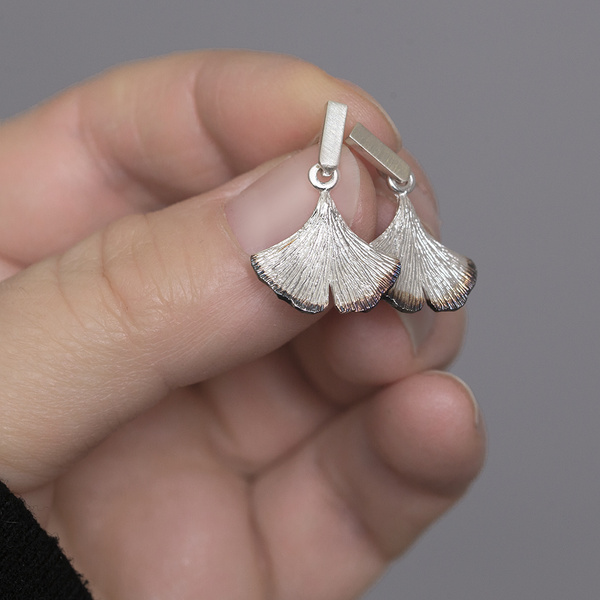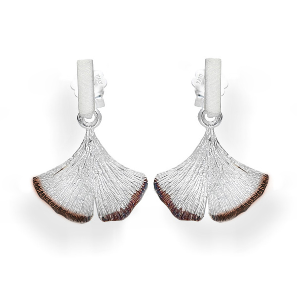 Kolczyki z liśćmi miłorzębu zostały na ozdobione na brzegach brązową oksydą.