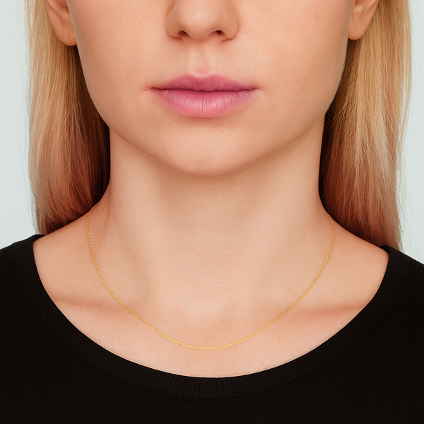 Przepiękny łańcuszek o ozdobnym splocie. Doskonała, jubilerska robota z wykorzystaniem złota 585. Łańcuszek został wykonany w polskiej pracowni złotniczej.